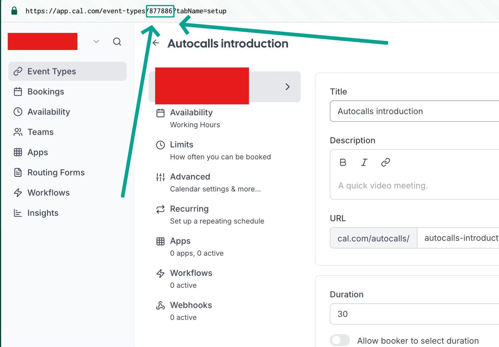 To include the caller’s phone number in calendar events:- Go to your event settings in Cal.com
